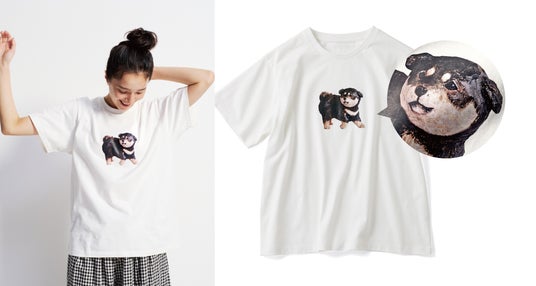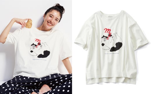 彫刻家はしもとみおさんの木彫り作品をモチーフにしたTシャツです。愛犬「月くん」の子犬時代をかたどった彫刻をもとに、木のぬくもりや愛らしい表情をプリントで表現。オフホワイトのやさしい色合いとゆったりとしたシルエットで、ユニセックスに着用できます。背面にはさりげないロゴ入りです。