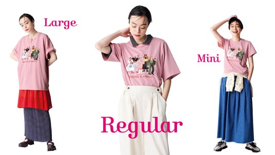 「みんな違って、みんなかわいい」をテーマに、人種や性別、国籍の異なるキャラクターたちが、個性あふれるファッションを楽しむ姿を描いたTシャツです。ミニ・レギュラー・ラージの異なるサイズ展開で、自分らしい着こなしが楽しめます。