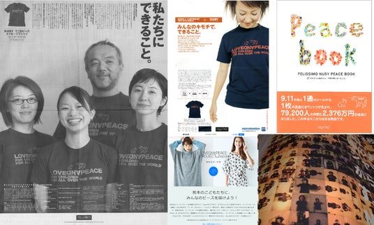 日本中から写真を送っていただき、 6万人が同じTシャツを着て平和を願うイベントを開催。