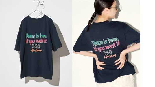 「あなたが望めば平和が訪れる」というメッセージを、ロサンゼルス在住のタイポグラファーShe Chimpが描いたTシャツです。初代LOVE&PEACE Tシャツを思わせるカラーで、24年の時を経て平和への願いを改めて込めました。ポップで親しみやすいデザインは、性別を問わず着こなせます。