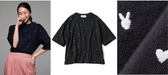 【NEW】IEDIT ハート&ピース刺しゅうTシャツby LOVE&PEACE PROJECT〈ブラック〉