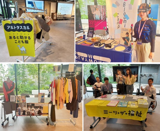 各ブースの様子:(左上)アルトタスカル、(右上)PLAYWORKS、(右下)ミーツ・ザ・福祉、(左下)YEW BERRY(イエローベリー)