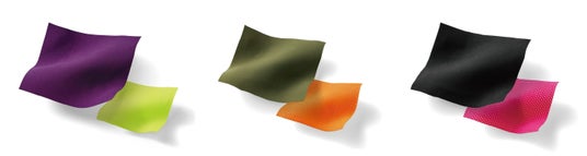 〈カシス×ネオンイエロー〉 〈カーキ×ネオンオレンジ〉 〈ブラック×ネオンピンク〉