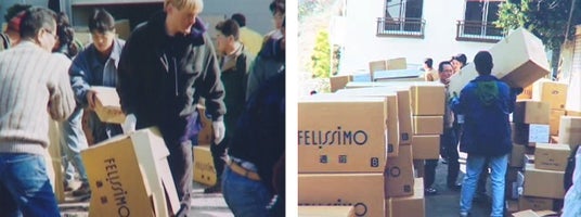 1995年1月17日に阪神・淡路大震災が発生した同年の9月、フェリシモは神戸に移転しました。震災直後の移転はまちと一体となって復旧・復興を行なっていく覚悟のあらわれでもありました。震災当時、全国のお客さまから被災した神戸に大変多くの支援と応援メッセージをいただきました。そこでフェリシモは毎月お客さまから100円をお預かりする「毎月100円義援金」を開始。6年間で4億円を超える基金が集まりました。それがお客さまとともにおこなう復興支援の礎となりました。さまざまな取り組みを通してみなさまとともに元気な神戸の街を取り戻すお手伝いをしてきました。その後も全国各地で災害が起きるたびにどのような支援が必要とされているのかをともに考え、ともに行動しています。神戸に移転して30年、みなさまとともに未来を築いていきます。