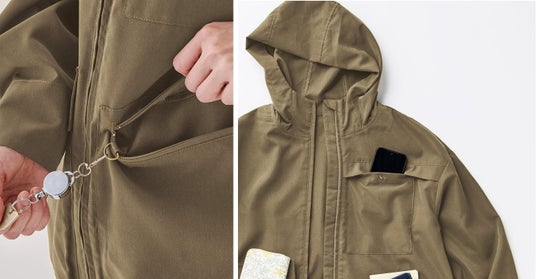 スタイリストりさ×UP.de もしもの時に手ぶらになれる 着られるバッグ(R) 撥水ジャケット〈UV&撥水/オリーブブラウン〉