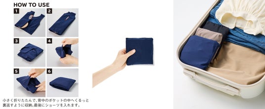 たたみ方も簡単です。背中にあるポケットにコンパクトに収納できて下着見えしないので、避難所などでも持ち出しやすくて◎。幅をとらないサイズ感で、タンスや旅行バッグの中もすっきりまとめられます。多めに用意すれば、清潔をキープすることができて安心です。