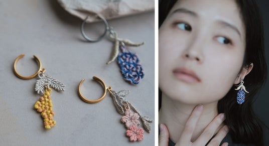 アトリエシムラが草木染めしたシルク糸の桐生刺繍