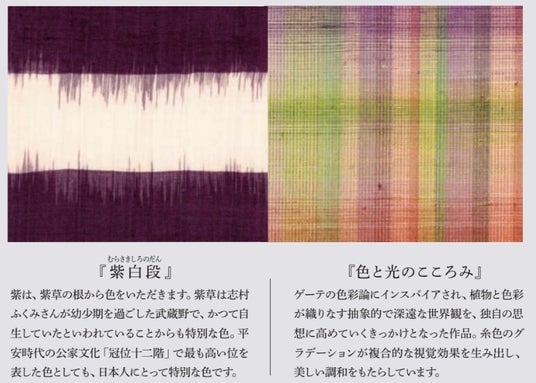 インスピレーション元となった、紫白段(写真左)、色と光のこころみ(写真右)