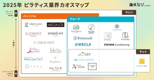GMOインターネットグループのGMO趣味なび株式会社(代表取締役社長:伊東 祐輔 以下、GMO趣味なび)が運営する趣味教室のプラットフォーム「趣味なび byGMO」(URL:https://coto.shuminavi.net/)は、2025年3月5日(水)に、日本国内のピラティス業界を可視化し、ピラティススタジオと関連資格を包括的に分類した「ピラティス業界カオスマップ(※1)」を公開しました。(https://coto.shuminavi.net/media/articles/10088/)