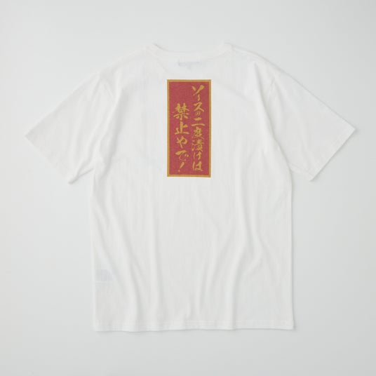 大阪・新世界の名物「串かつだるま」の名物キャラとおなじみのフレーズを全面に押し出した、クスッと笑えるTシャツです。
