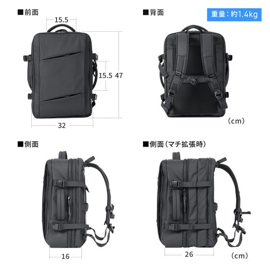 掲載ページリュック マチ拡張 ビジネス 大容量 22L~35L PCリュック シンプル PUコーティング 耐水 撥水 多機能 バックパック メンズ 旅行 出張 ブラック