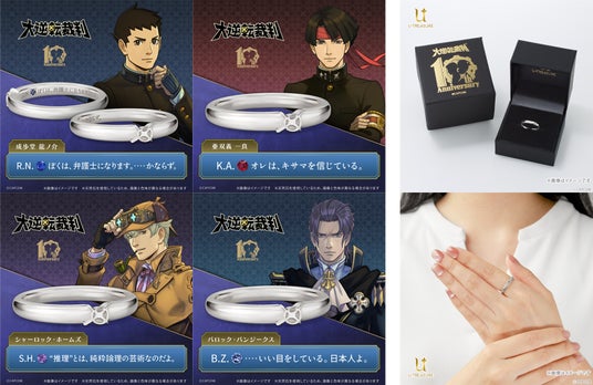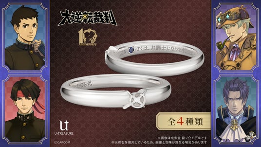「大逆転裁判」シリーズ10周年を記念して、株式会社ユートレジャーより4種の「メッセージリング(指輪)」の発売が決定! 2026年2月12日(木)より予約受付開始