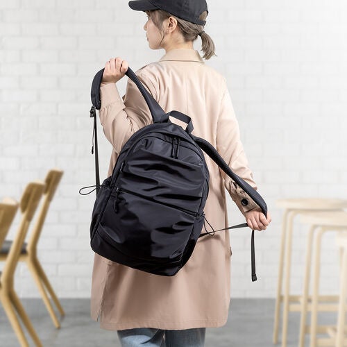 容量は約19Lで、日常に必要な荷物をしっかり収納できます。メイン収納部はA4サイズも余裕で入る設計で、書類やノート、ガジェット類などをまとめて持ち運び可能。通勤・通学だけでなく、ちょっとしたお出かけやショッピングなど、さまざまなシーンで活躍します。