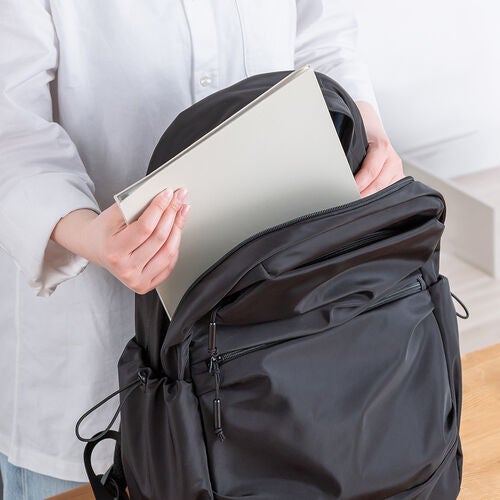 クッション入りのPCポケットを備え、最大14型までのノートPCを安全に持ち運ぶことができます。また、雨の日でも安心して使える撥水生地を採用。厚みのある耐久性の高い素材により、日常使いにも安心です。さらに、メッシュ素材の高クッションベルトが肩への負担を軽減し、長時間の使用でも快適な背負い心地を実現します。