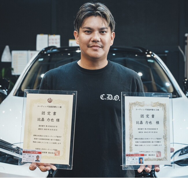 国内わずか4名。沖縄のカーディテイリング技術者が国際・国内の最高峰資格をダブル取得