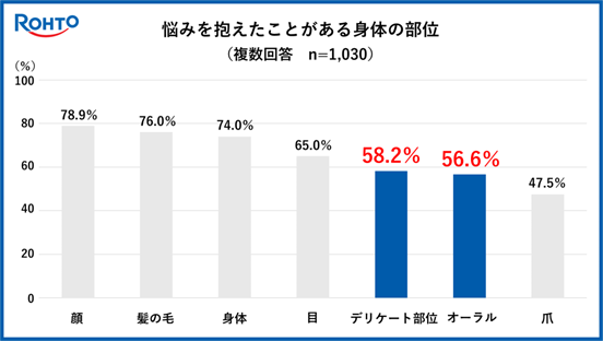 ~ロート製薬が「デリケート部位に関する調査」を実施~オーラルケアと同水準のニーズを持つデリケート部位ケアおよそ3人に1人が2年以上前からデリケート部位に悩んでいる!?