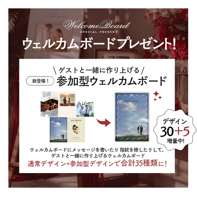 有限会社三景スタジオ「世界にひとつ」の特別な一日を演出する、ウェルカムボードの最新トレンド。専属デザイナーによるオリジナルデザインがリニューアルし、ゲストと一緒に創る「参加型」デザインを含む全3...
