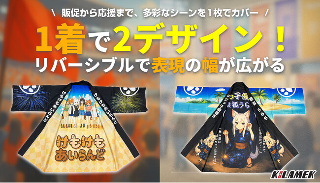 キラメック1枚で2パターンのデザインを切り替え可能!推し活から販促イベントまで話題性抜群の次世代法被リバーシブル法被 × オリジナルデザインの制作をスタート株式会社KILAMEKでは、1着で表裏...