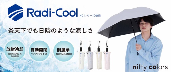 株式会社ニフティカラーズ紫外線が強くなる前にチェックしたい、紫外線・暑さ・風に強い「Radi-Cool」放射冷却技術を応用した生地の耐風自動開閉傘が、1月14日(水)よりクラウドファンディングM...