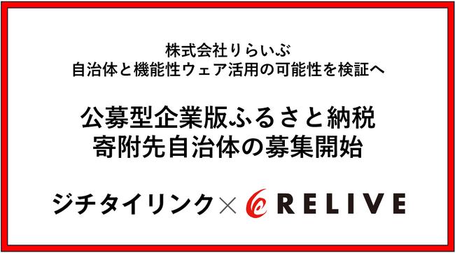 株式会社りらいぶ企業版ふるさと納税支援を手がけるジチタイリンクと連携し、機能性ウェアの活用拡大に向けた検証を推進株式会社りらいぶ(本社:宮城県仙台市、代表取締役:佐々木貴史)は、株式会社ジチタイ...