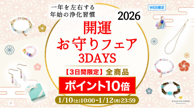 H1GLOBAL株式会社ハワイ発祥の天然石アクセサリーブランド「マルラニハワイ」は、1月10日(土)10:00 ~ 1月12日(月)23:59の期間、公式オンラインショップにて「新年キャンペーン...