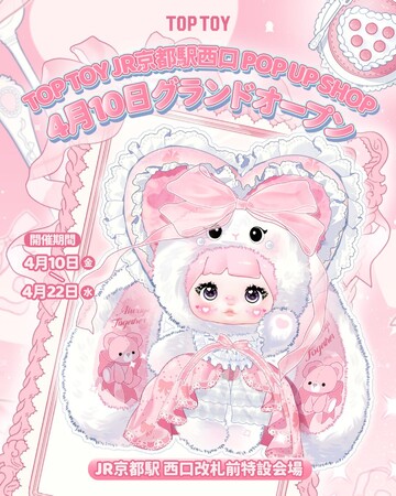 JR西日本 中国発の人気トイブランド「TOP TOY」は、2026年4月10日(金)より、JR京都駅 西口改札前特設会場にて期間限定のPOP UP SHOPをオープンいたします。 話題のキャラク...