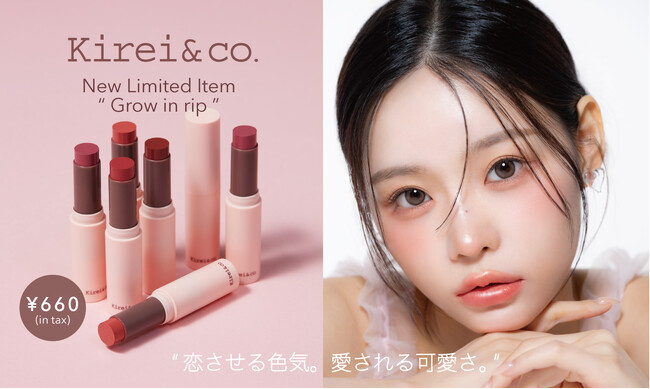 ALL660円コスメ “Kirei&co.” からオイルイン仕様でうる艶仕上げのリップスティックが限定発売。人気の限定商品、グリッターライナーも新色が加わり定番化!