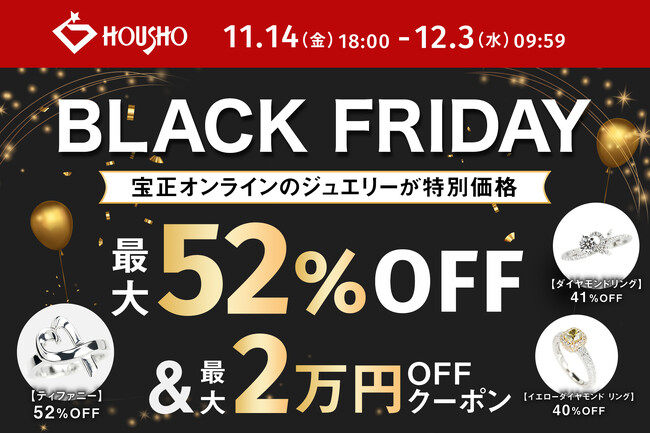 株式会社宝正高品質なダイヤモンド・真珠など中古ジュエリーを取り扱う株式会社宝正(ホウショウ)は、公式オンラインショップ「宝正オンライン」にて、2025年11月14日(金)よりブラックフライデーセ...