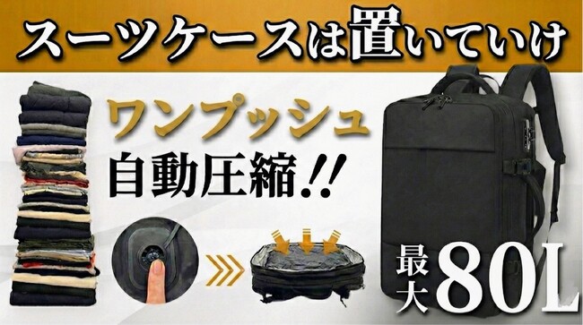 Airvex2種の自動圧縮袋を組み合わせ、大型スーツケース級1週間分の荷物をバックパックに収納する新発想。手荷物サイズで「荷物を預けない旅」を可能に大人の旅を、もっと自由に。旅好きなおとなのため...