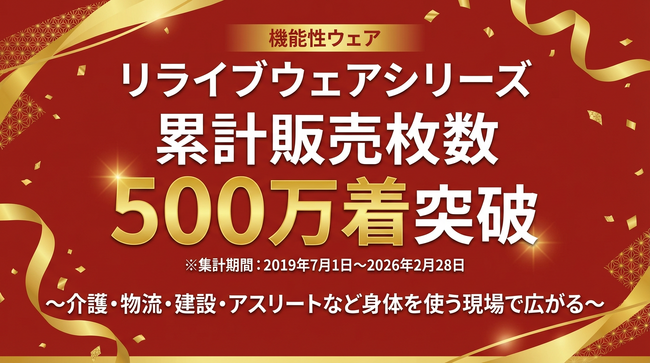 株式会社りらいぶ株式会社りらいぶ(本社:宮城県仙台市、代表取締役:佐々木貴史)が製造・販売する機能性ウェア「リライブウェア」が累計販売枚数500万着※1を突破。介護や製造、物流などの現場を中心に...