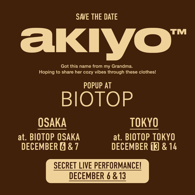 株式会社ジュン新ブランド「akiyo」1stシーズン、初のPOP-UP SHOPをBIOTOP 2店舗にて開催株式会社ジュン (本社:東京都港区 / 代表 佐々木進) が運営する「BIOTOP ...