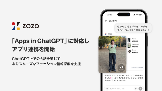 株式会社ZOZO~ ChatGPT上での会話を通じて、よりスムーズなファッション情報探索を支援 ~株式会社ZOZO(本社:千葉県千葉市 代表取締役社長兼CEO:澤田 宏太郎)は、OpenAIの対...