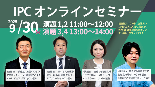 最新化粧品原料と海外マーケット情報を伝えるオンラインイベント「IPCオンラインセミナー2025」を実施します。