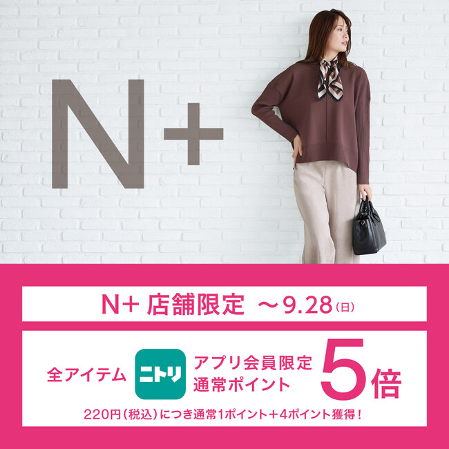 株式会社ニトリホールディングスニトリグループのアパレルブランド「N+」を展開する株式会社Nプラス(本社:東京都北区 代表取締役 社長:高橋陵)は、N+全店(全国40店舗)を対象とした"ニトリアプ...