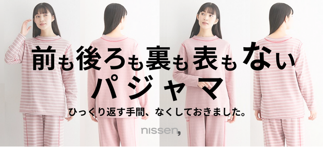株式会社ニッセンホールディングスいいんですよ、どちら側でも。どんな風に着ても。自由なパジャマです。株式会社ニッセン(本社:京都市南区、代表取締役社長:羽渕 淳)は、前後・裏表を気にせず着られる新...