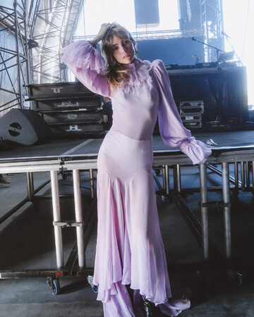 Alexander McQueen8月16日、フランス・メジエールで開催された音楽フェスティバル「キャバレー・ヴェール」にて、スキ・ウォーターハウスがマックイーンを纏い登場しました。2025年秋...