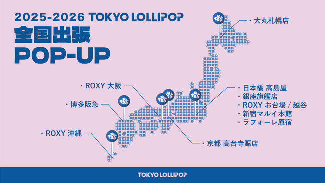 concon株式会社Forbes JAPAN選出の注目ブランド「TOKYO LOLLIPOP」が、年末年始より全国全11エリアでポップアップを連続開催。東京、札幌、京都、大阪、福岡、沖縄で、巨大...