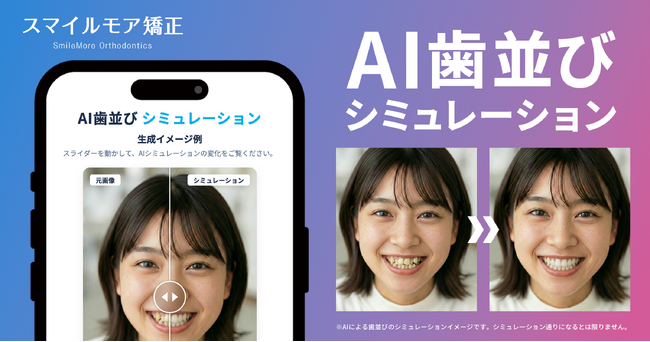 株式会社スマイルモアマウスピース矯正ブランド「スマイルモア矯正」の企画・運営を行う株式会社スマイルモア(代表取締役:堀琢馬)は、歯科医監修による「AI歯並びシミュレーション」をリリースいたしまし...
