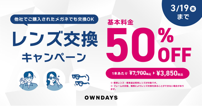OWNDAYS今だけ基本料金 ¥3,850(税込)から交換可能!春の「曇り・眩しさ・荷物」の悩みを解消する最新レンズへの更新もおすすめメガネ・サングラスの製造販売を手掛ける株式会社オンデーズ(本...