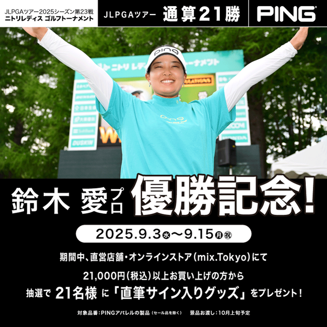 株式会社TSIホールディングス報道関係者各位株式会社TSI(本社:東京都港区、代表取締役社長:下地 毅)が展開する「PING APPAREL(ピンアパレル)」は、鈴木愛プロのニトリレディスゴルフ...
