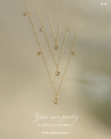 2026/02/16イー・エム・デザイン株式会社イー・エム・デザイン株式会社「Your own jewelry」と題し、一つ一つ異なるフォルムやカラーのローズカットダイヤモンドを贅沢にあしらったゴールドネックレスをe.m.丸の内店にて期間限定...