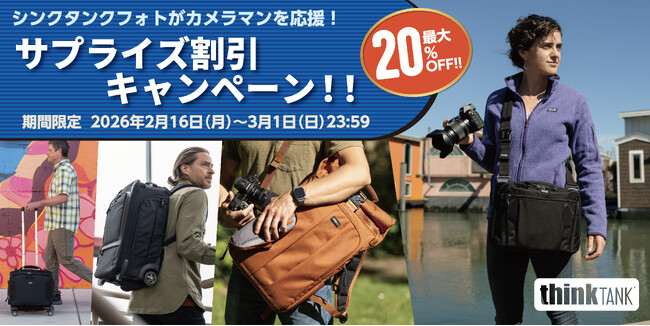 銀一株式会社2026年2月16日(月)より、thinkTANKphoto(シンクタンクフォト)製品を対象とした、「シンクタンクフォトがカメラマンを応援!サプライズ割引キャンペーン!!」を実施いた...