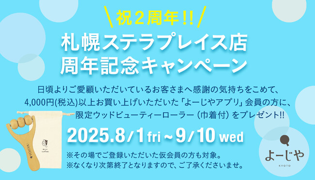 株式会社よーじやキャンペーン開始日:2025年8月1日(金)株式会社よーじや(京都府京都市下京区、代表取締役・國枝昂)が運営する、京都発のライフスタイルブランド「よーじや」は、2023年8月に札...