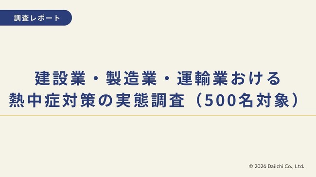株式会社ダイイチ株式会社ダイイチ(本社:神奈川県横浜市)は、建設業・製造業・運輸業を中心とした企業勤務者500名を対象に、企業における熱中症対策の実態調査を実施しました。 調査の結果、79.4%...