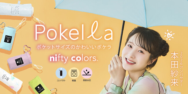株式会社ニフティカラーズ定番商品の新柄に加え、高さ12cmの超コンパクトサイズ折りたたみ傘が新登場。本田紗来さんのキュート&ポップなブランドビジュアルにも注目!株式会社ニフティカラーズ(本社:東...